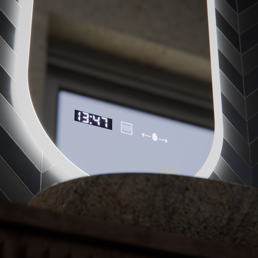 Οβάλ καθρέφτης LED, 50x100cm, Lucia Sensor Marcello, Σύστημα Demister, Ρολόι & Θερμόμετρο, Dimmable