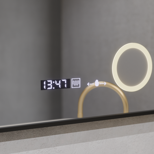 Στρογγυλός καθρέφτης LED, 70 εκ., Visio MotionGlow Marcello, Σύστημα Demister, Ρολόι & Θερμόμετρο, Καλλυντικό Μεγεθυντικός φακός, Ρυθμιζόμενο