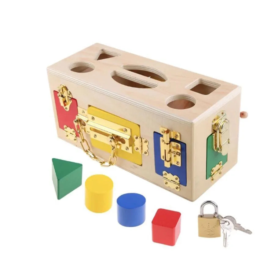 Εκπαιδευτικό παιχνίδι Montessori Lock Cube, 5 κομμάτια, πολύχρωμα, ξύλο