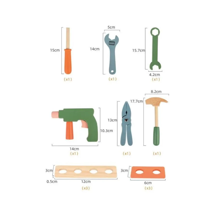 Κιτ εργαλείων τύπου παιχνιδιών, πολύχρωμα, 22 κομμάτια, ξύλο