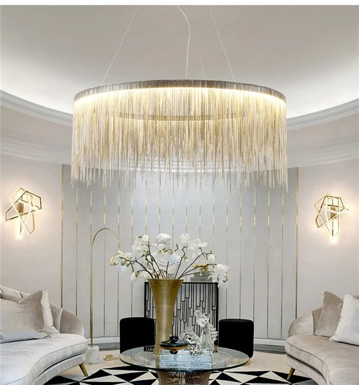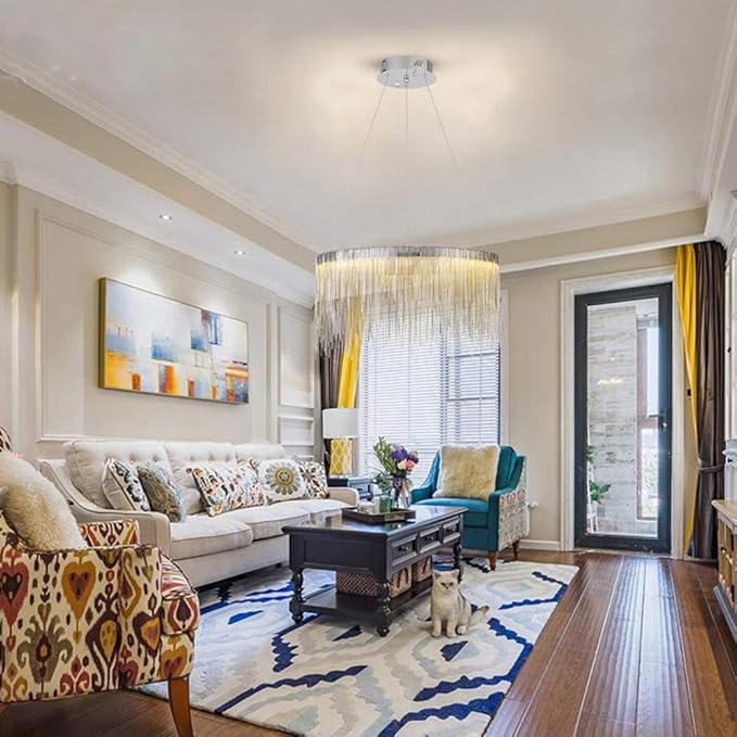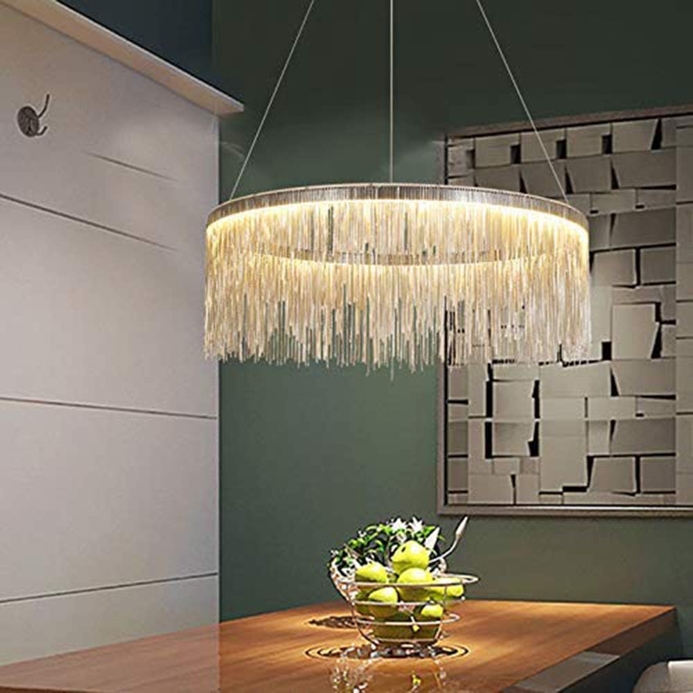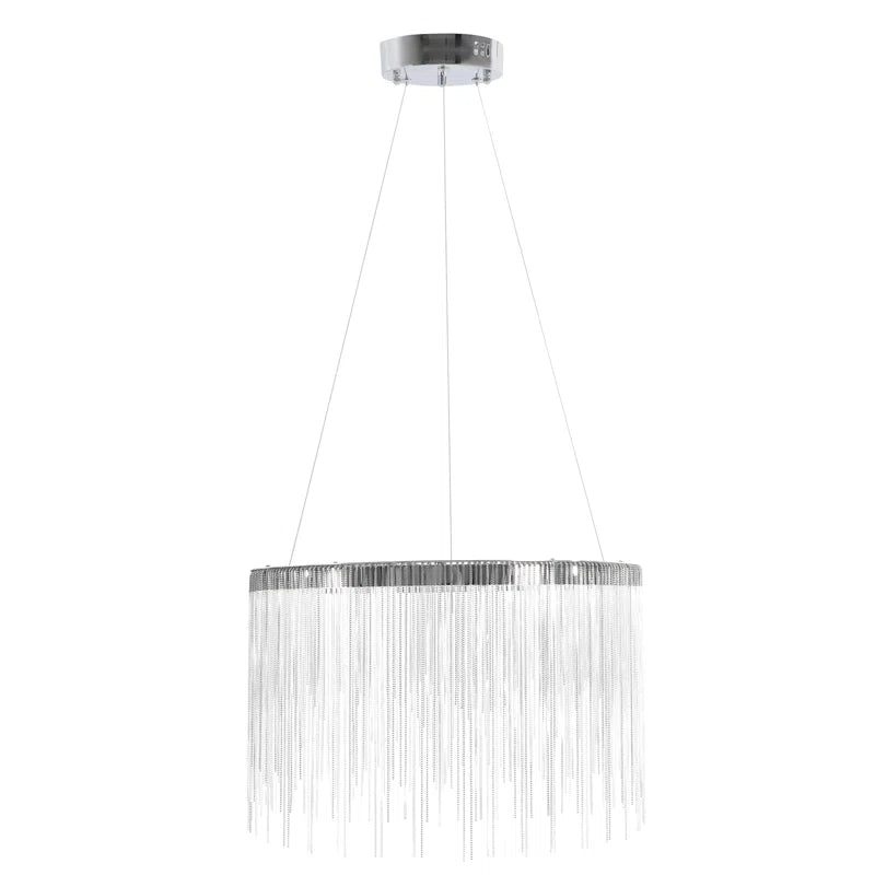 Κρεμαστό μοντέλο, με διάμετρος 49 cm και ύψος 120 cm, συνιστάται για τραπεζαρία, σαλόνι ή υπνοδωμάτιο. Στρογγυλή κατασκευή, γυαλιστερό φινίρισμα χρωμίου και φωτισμός με ενσωματωμένη λωρίδα LED.
