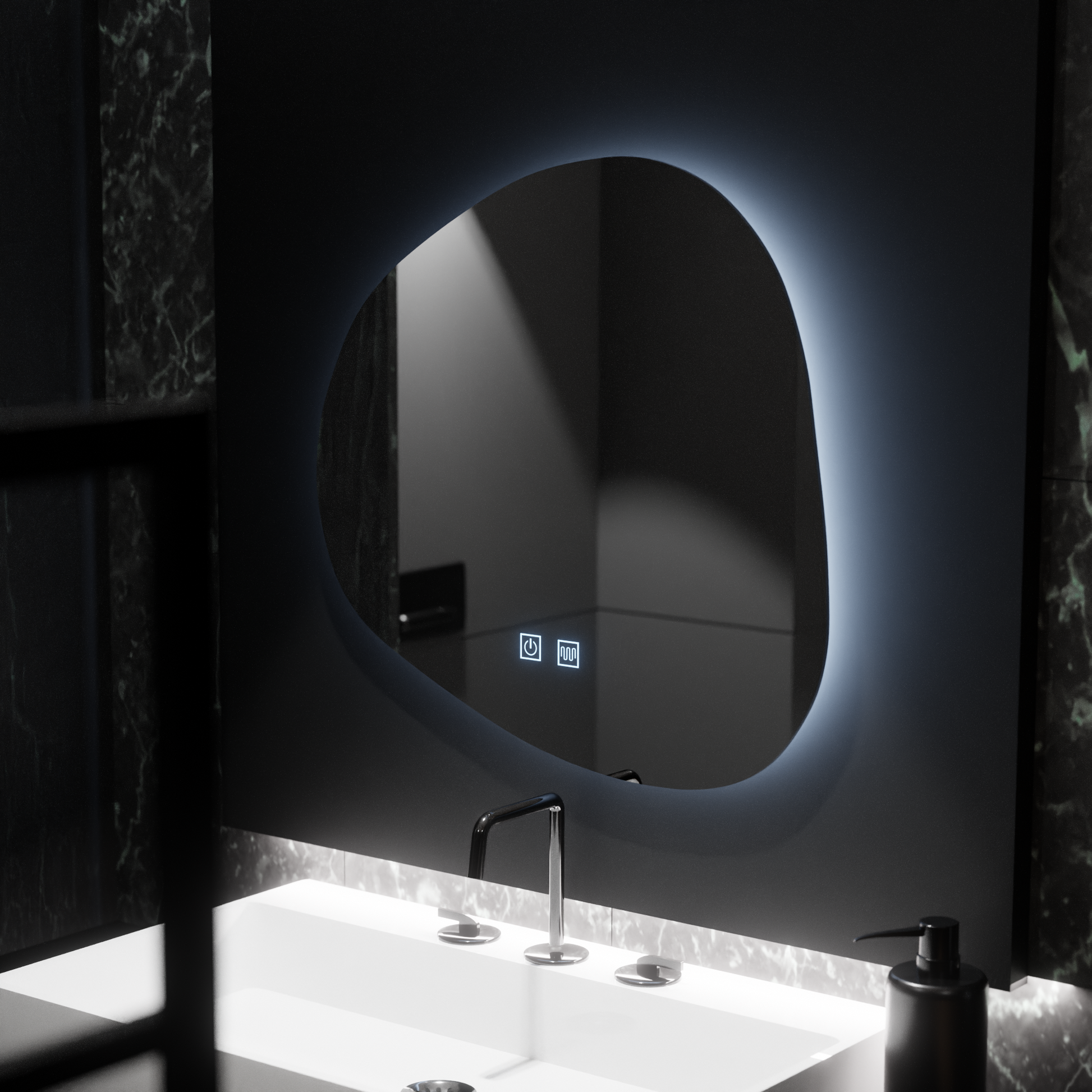 Ο καθρέφτης Duna Touch Organic LED, με διαστάσεις περίπου 60x60 cm (το οργανικό σχήμα μπορεί να διαφέρει ελαφρώς από ένα τέλειο τετράγωνο), φέρνει ένα ρευστό και φυσικό στοιχείο σχεδίασης στο χώρο σας. Σε αντίθεση με τα παραδοσιακά ορθογώνια ή στρογγυλά σχήματα, το ακανόνιστο και αρμονικό περίγραμμά του προσθέτει μια επιπλέον πινελιά πρωτοτυπίας και φινέτσας.