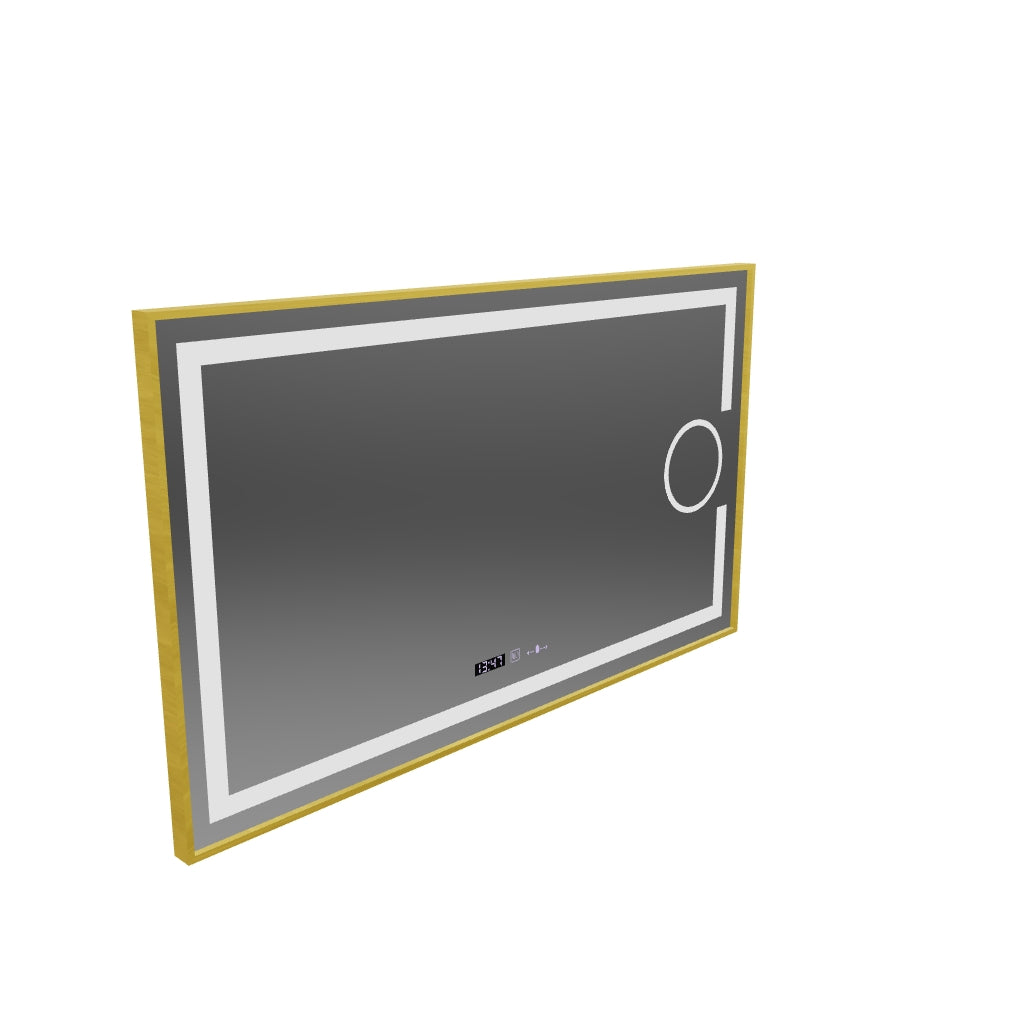 Ορθογώνιος καθρέφτης LED, 110x65cm, Eclat MotionGlow Marcello, Σύστημα Demister, Ρολόι & Θερμόμετρο, Καλλυντικό μεγεθυντικός φακός, Dimable, Βουρτσισμένο χρυσό πλαίσιο
