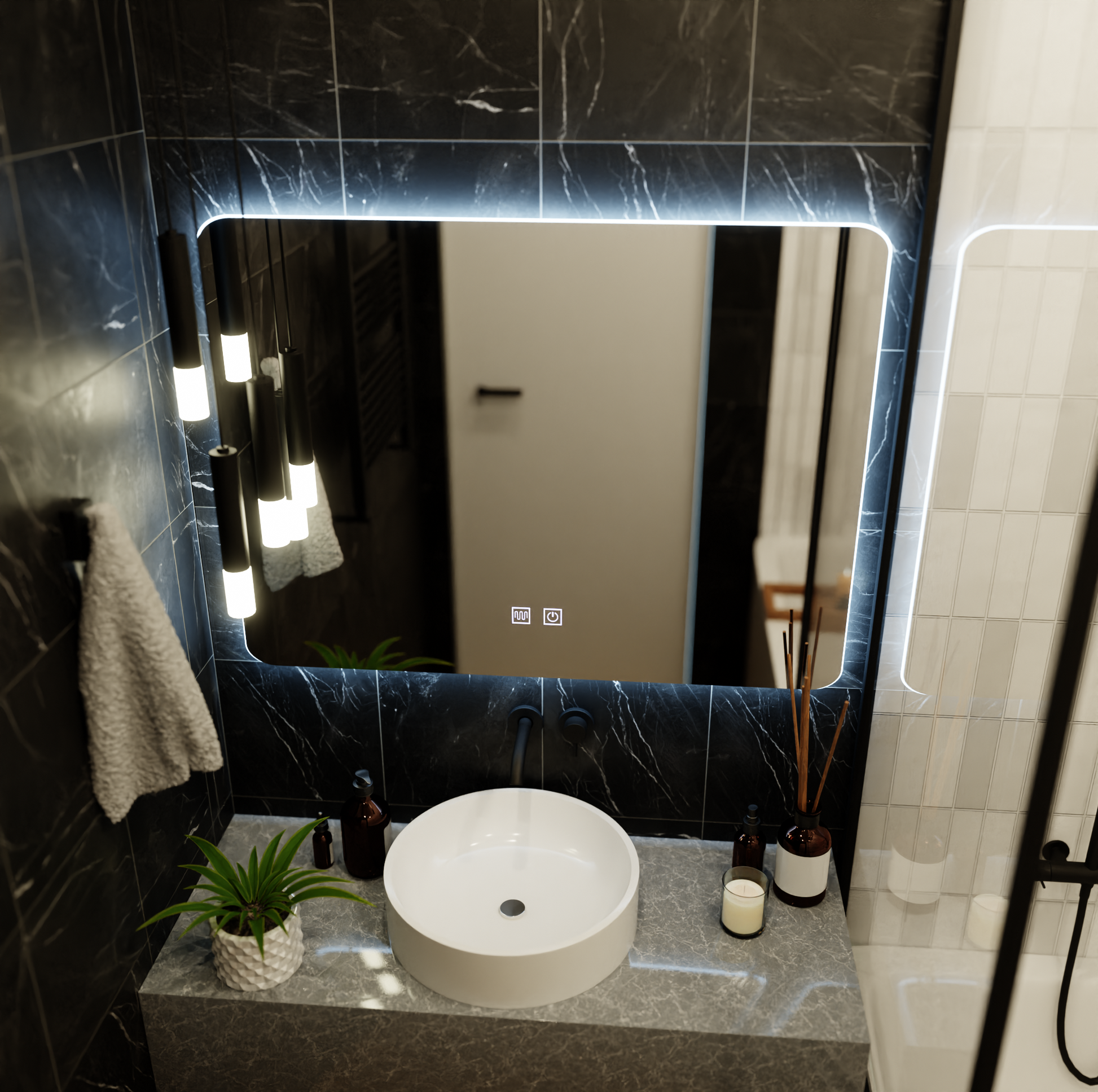 ARTEA Ορθογώνιος καθρέφτης LED αφής, 80X60cm, Σύστημα Demister, Dimmable, Race Light 6000K