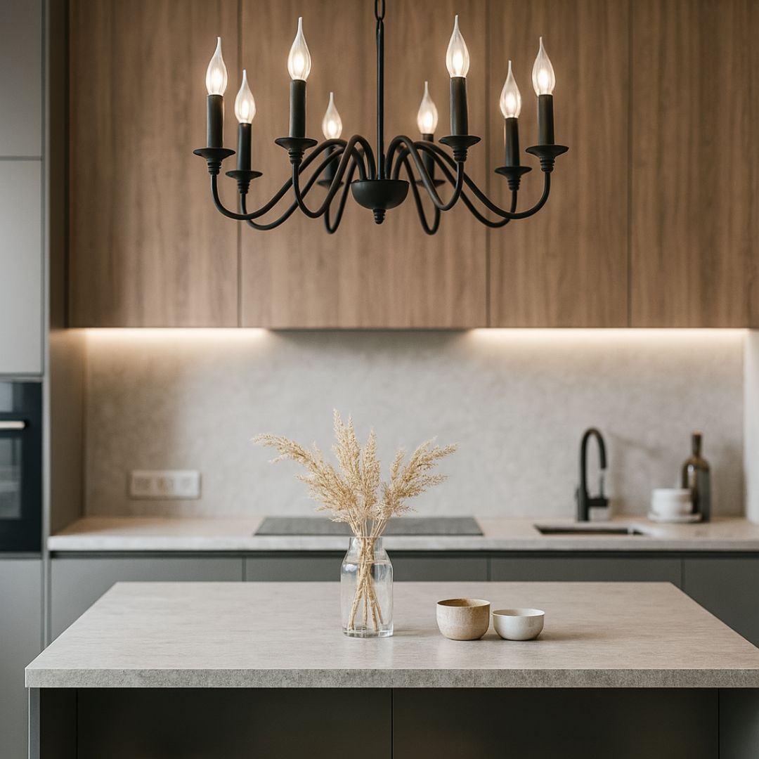 Η ευελιξία εξασφαλίζεται από αυτά 8 πρίζες E14. Αυτά σας επιτρέπουν να επιλέξετε ακριβώς τον τύπο λαμπτήρα που θέλετε: μπορείτε να εγκαταστήσετε λαμπτήρες LED για ενεργειακή απόδοση και ένα διαφανές φως ή διακοσμητικούς λαμπτήρες για να αλλάξετε τη γενική εμφάνιση του πολυελαίου. Η μεταλλική κατασκευή εξασφαλίζει αντοχή και μεγάλη διάρκεια ζωής.