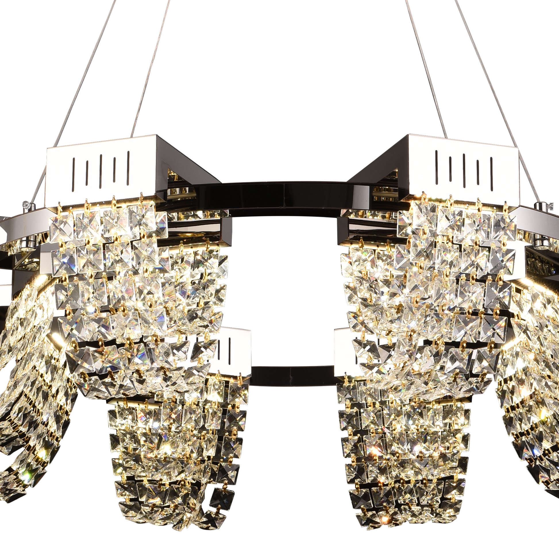 LED Crystal Chandelier 40W, CC370/800CH, Διάμετρος 80cm, Γυαλιστερό χρώμιο, Ρυθμιζόμενο ύψος, Θερμό Ουδέτερο Ψυχρό Φως 3000K/4000K/6000K, Μέταλλο και Κρύσταλλο