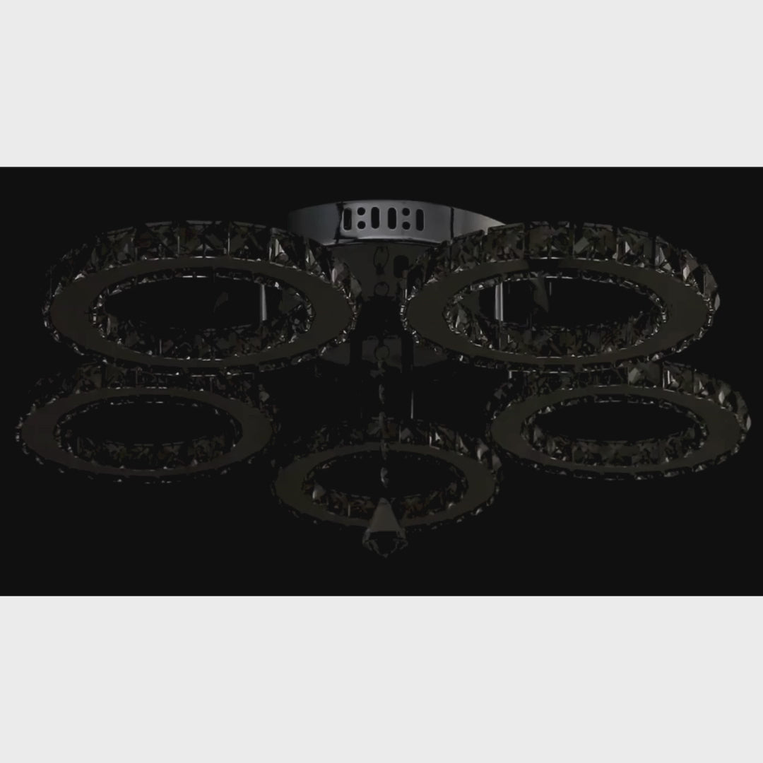 Πολυέλαιος LED με τηλεχειριστήριο και κρύσταλλο ALANUBIS 61W, 5 κύκλοι, Κρύο/Ζεστό/Ουδέτερο φως, Ρυθμιζόμενο, Γυαλιστερό Chrome