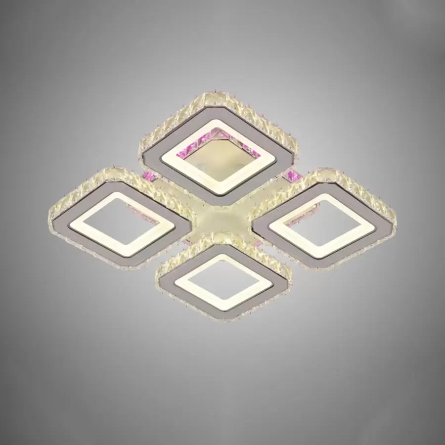 Πολυέλαιος LED με τηλεχειριστήριο και κρύσταλλο BLAKELY RGB 74W, 4 Τετράγωνα, Κρύο/Ζεστό/Ουδέτερο φως, Ρυθμιζόμενο, Λευκό