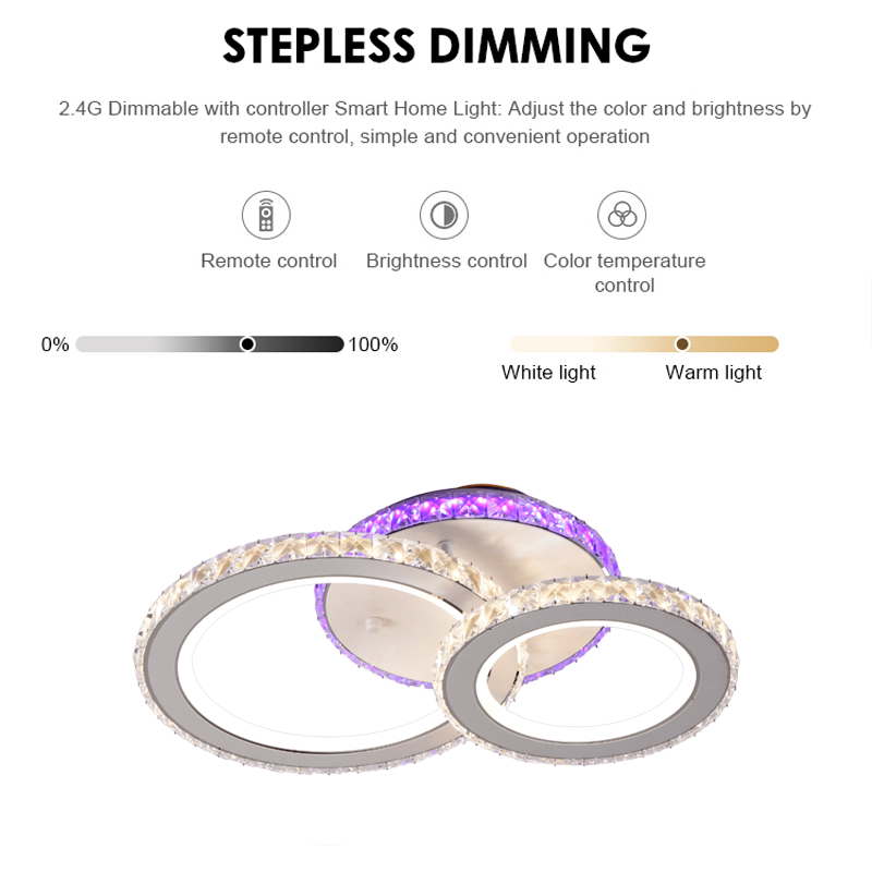 Πολυέλαιος LED με τηλεχειριστήριο και κρύσταλλο NOVA ROTONDA RGB 43W, 2 Κύκλοι, Κρύο/Ζεστό/Ουδέτερο φως, Ρυθμιζόμενο, Λευκό