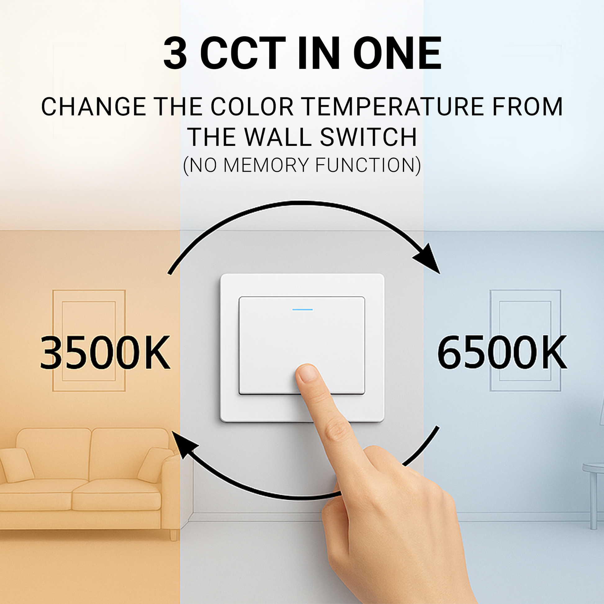 ⚠️ ΠΡΟΣΕΚΤΙΚΟΣ!: Η ρύθμιση σε μια συγκεκριμένη θερμοκρασία χρώματος μπορεί να γίνει μόνο εάν οι πολυελαίοι σταματήσουν και ξεκίνησαν από το τηλεχειριστήριο. Τόσο στους πολυελαίους με το τηλεχειριστήριο, η διαδοχική πίεση του διακόπτη αλλάζει τον τύπο φωτός.