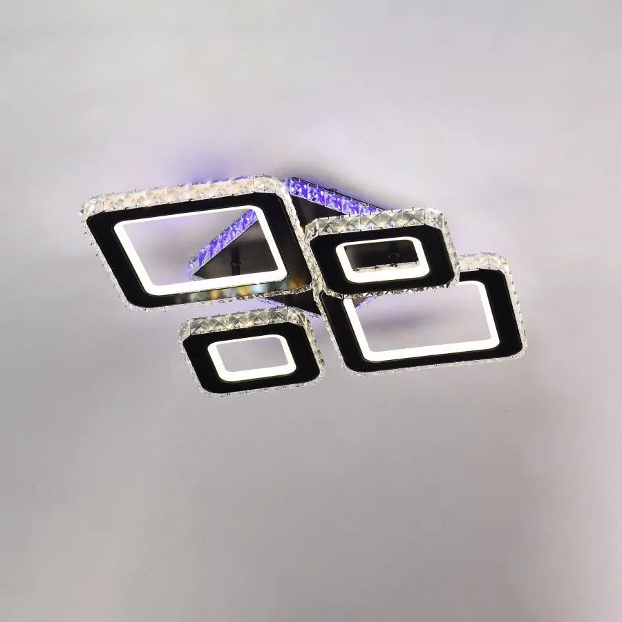 Πολυέλαιος LED με τηλεχειριστήριο και κρύσταλλο TERRANO RGB 162W, 4 Τετράγωνα, Κρύο/Ζεστό/Ουδέτερο φως, Ρυθμιζόμενο, Μαύρο