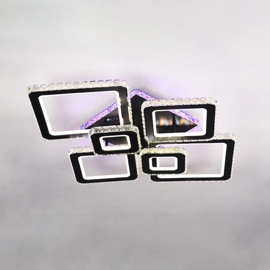 Πολυέλαιος LED με τηλεχειριστήριο και κρύσταλλο TERRANO RGB 288W, 6 Τετράγωνα, Κρύο/Ζεστό/Ουδέτερο φως, Ρυθμιζόμενο, Μαύρο