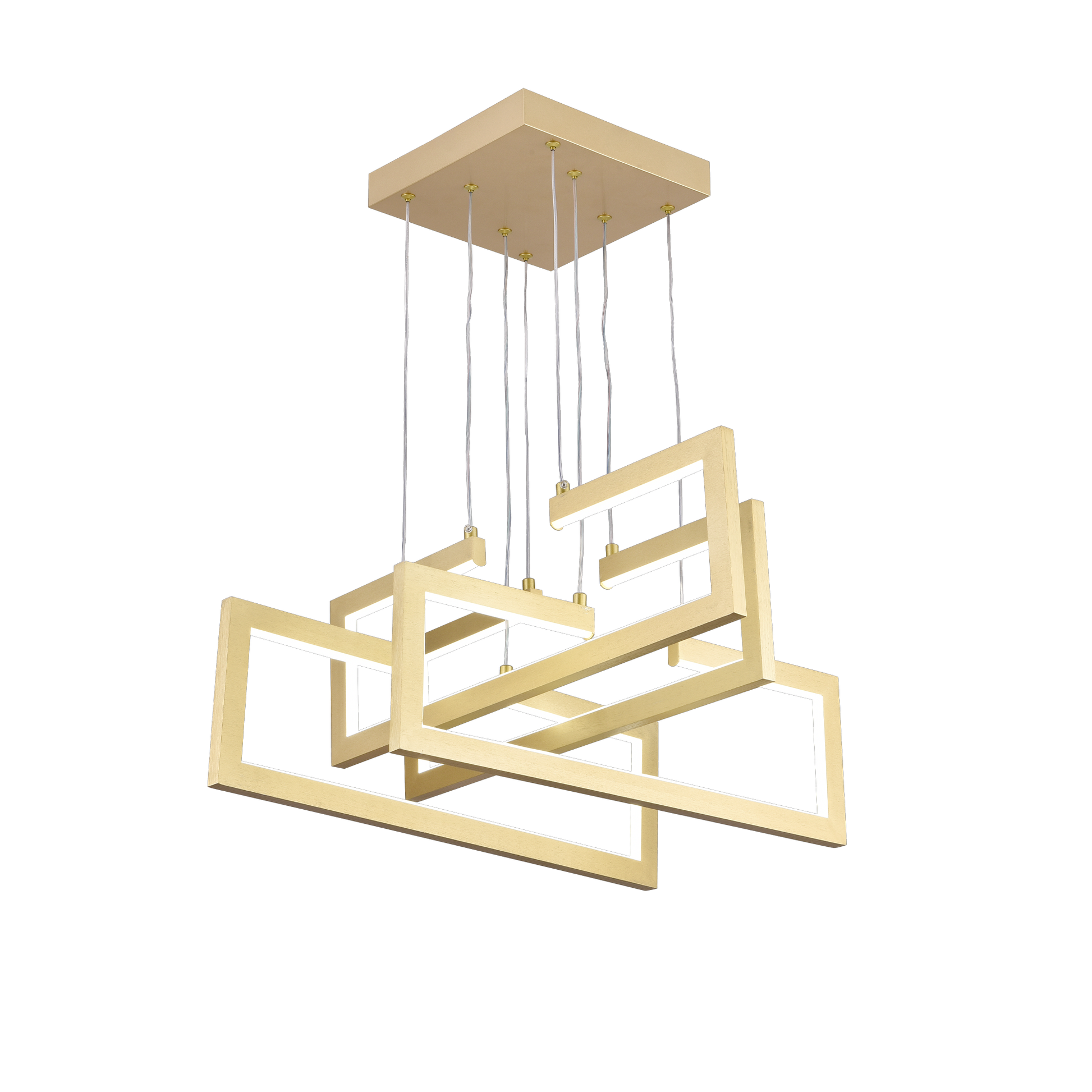 Πολυέλαιος LED με τηλεχειριστήριο, Κρεμαστό 98W, 4 Στοιχεία, Κρύο/Ζεστό/Ουδέτερο φως, Ρυθμιζόμενο, Ρυθμιζόμενο ύψος, Χρυσό