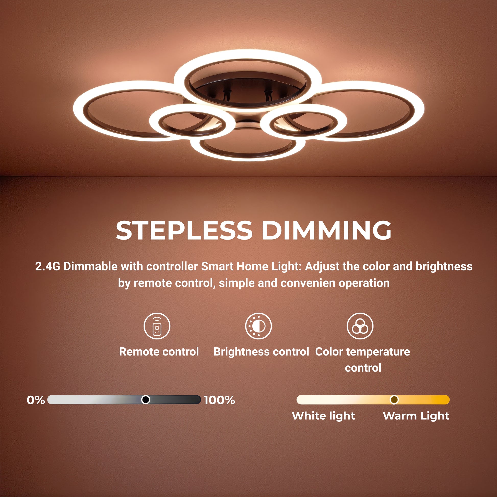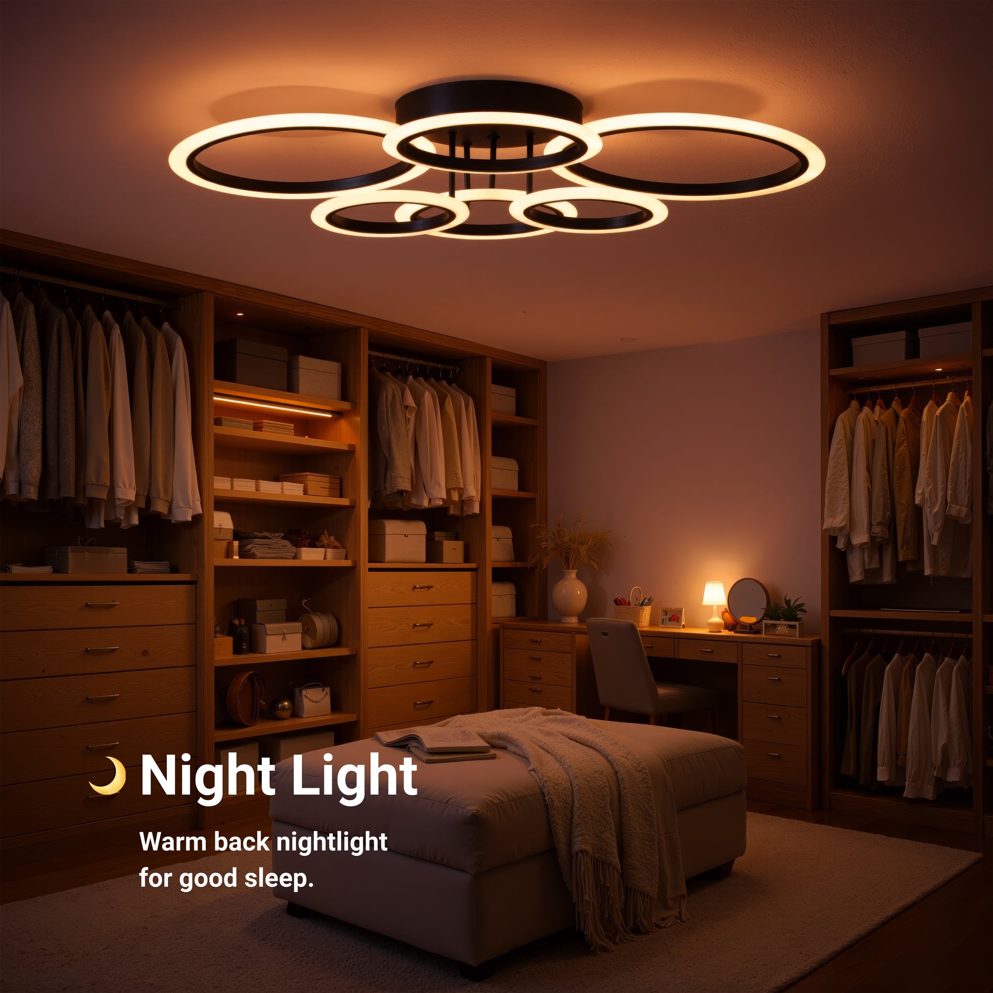 Πολυέλαιος LED με τηλεχειριστήριο BETTY 82W, 6 Κύκλοι, Κρύο/Ζεστό/Ουδέτερο φως, Ρυθμιζόμενο, Μαύρο