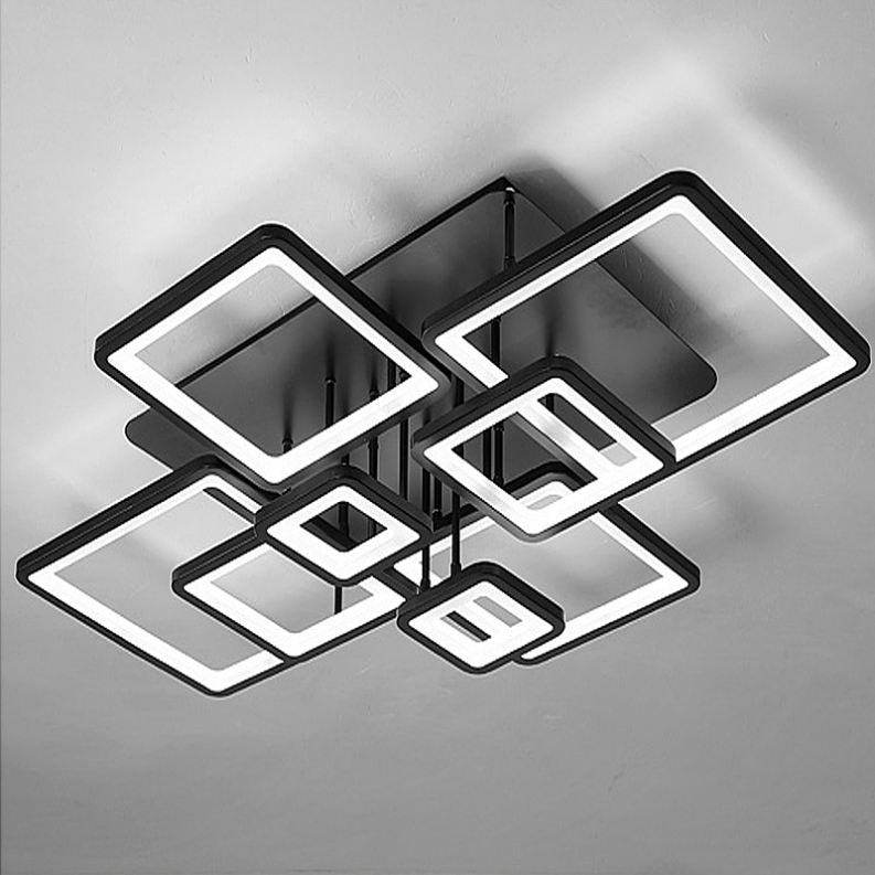 Πολυέλαιος LED με τηλεχειριστήριο ELLA 203W, 8 Τετράγωνα, Κρύο/Ζεστό/Ουδέτερο φως, Ρυθμιζόμενο, Μαύρο