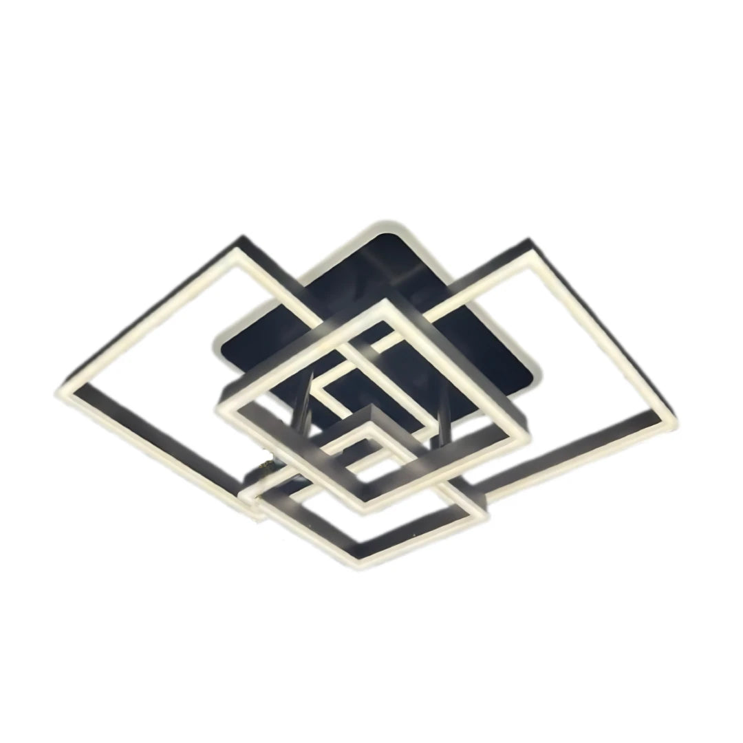 Πολυέλαιος LED με τηλεχειριστήριο EMMA 190W, 4 Τετράγωνα, Κρύο/Ζεστό/Ουδέτερο φως, Ρυθμιζόμενο, Μαύρο