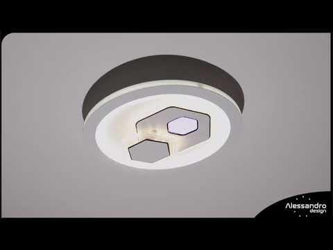 Ο κομψός σχεδιασμός συνδυάζει το κυκλικό σχήμα με εξαγωνικά στοιχεία, ένα από τα οποία έχει διακοσμητικό μοβ φως. Με συμπαγείς διαστάσεις 20x20 cm και λεπτό προφίλ 4 cm, ο πολυέλαιος KATHLEEN ενσωματώνεται τέλεια σε μοντέρνους χώρους.