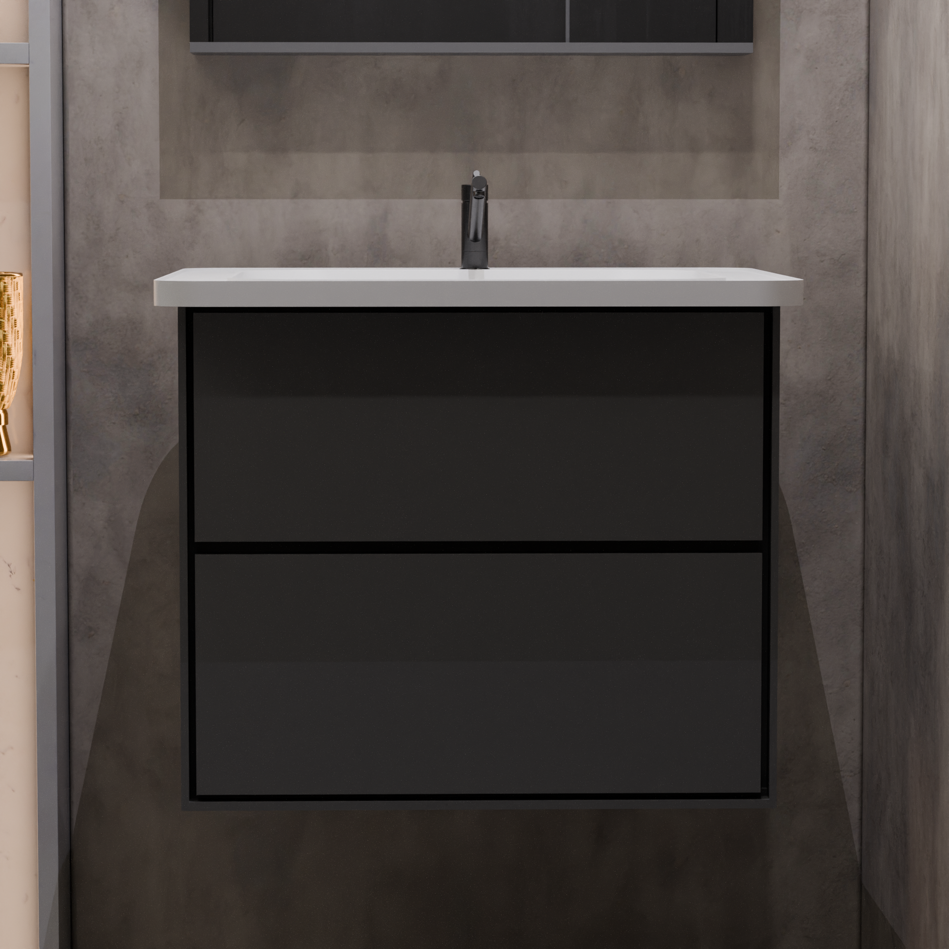 2. Κάτω σώμα (Έπιπλα με νεροχύτη): Τα βασικά έπιπλα είναι επίσης αναρτημένα, επιτρέποντας τον εύκολο καθαρισμό του δαπέδου. Διαθέτει συρτάρια για αποθήκευση και ενσωματώνει έναν νεροχύτη απευθείας στον πάγκο. Ο σχεδιασμός με χυτή λεκάνη δημιουργεί μια συνεχή επιφάνεια, χωρίς αρμούς, εύκολη στη συντήρηση και με μοντέρνα εμφάνιση.