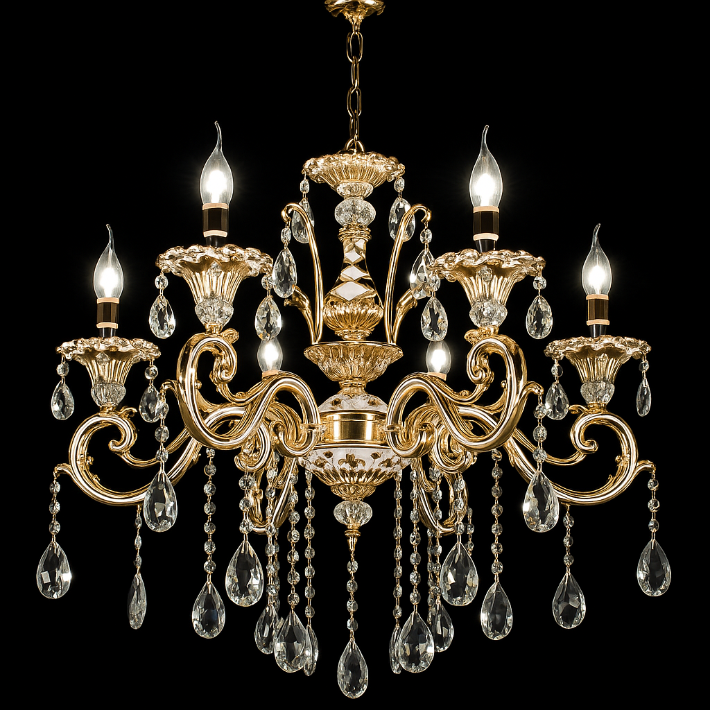Δίνει κομψότητα στο δωμάτιό σας μέσω αυτού του ειδικού πολυέλαιου. Οι πηγές φωτός περιβάλλονται από περίτεχνα νήματα με εντυπωσιακό αριθμό κρυστάλλων. Μόλις φωτιστεί ο πολυέλαιος, η φωτεινή αντανάκλαση μέσω των προσεκτικά τοποθετημένων κρυστάλλων δημιουργεί μια μοναδική, αισθητική εξαιρετική πηγή.