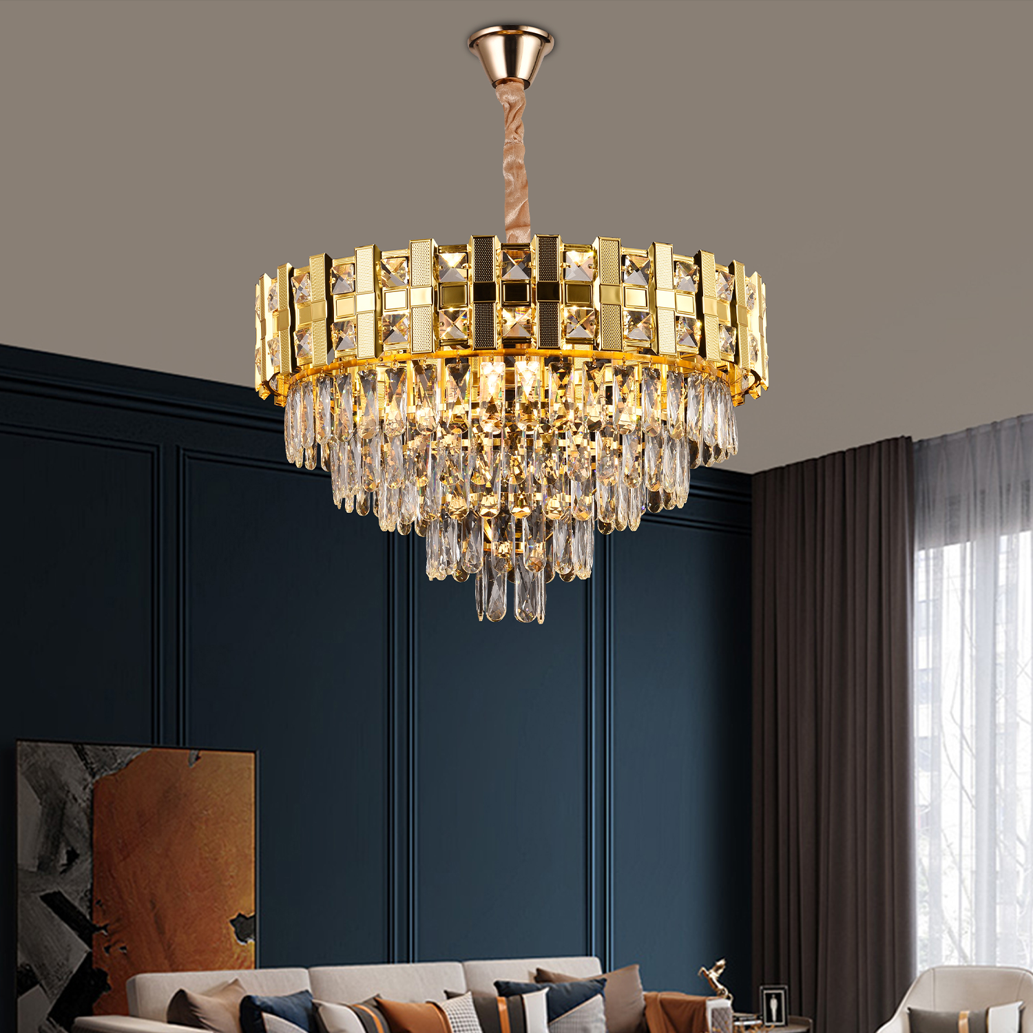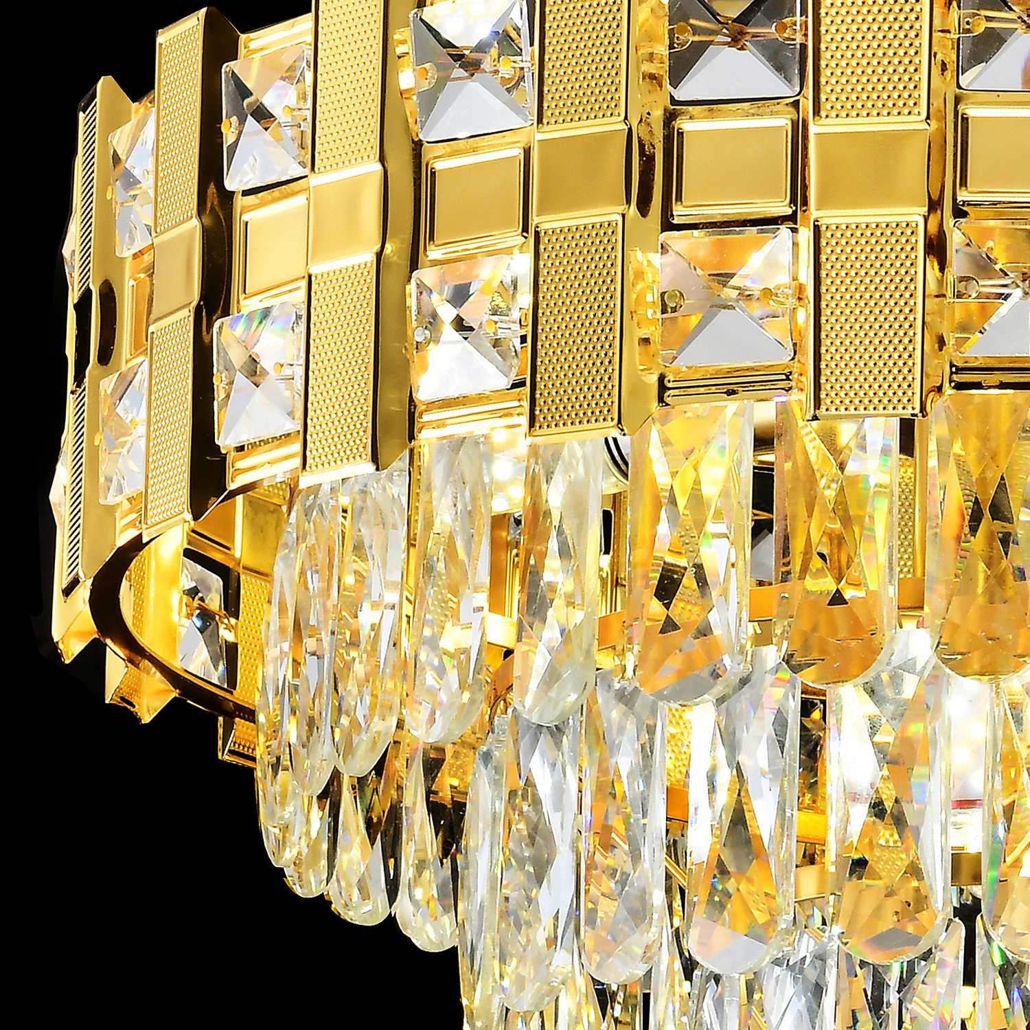 Crystal Chandelier BRAN Mango 8xE14, Διάμετρος 60cm, Γυαλιστερό Χρυσό, Ρυθμιζόμενο Ύψος