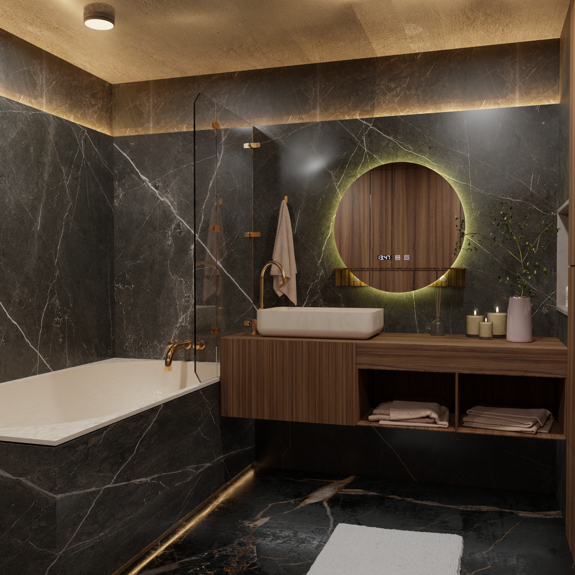 LED Στρογγυλός καθρέφτης, 60cm, Celeste Majesté Noir MotionGlow Marcello, Σύστημα Demister, Ρολόι & Θερμόμετρο, Ρυθμιζόμενο