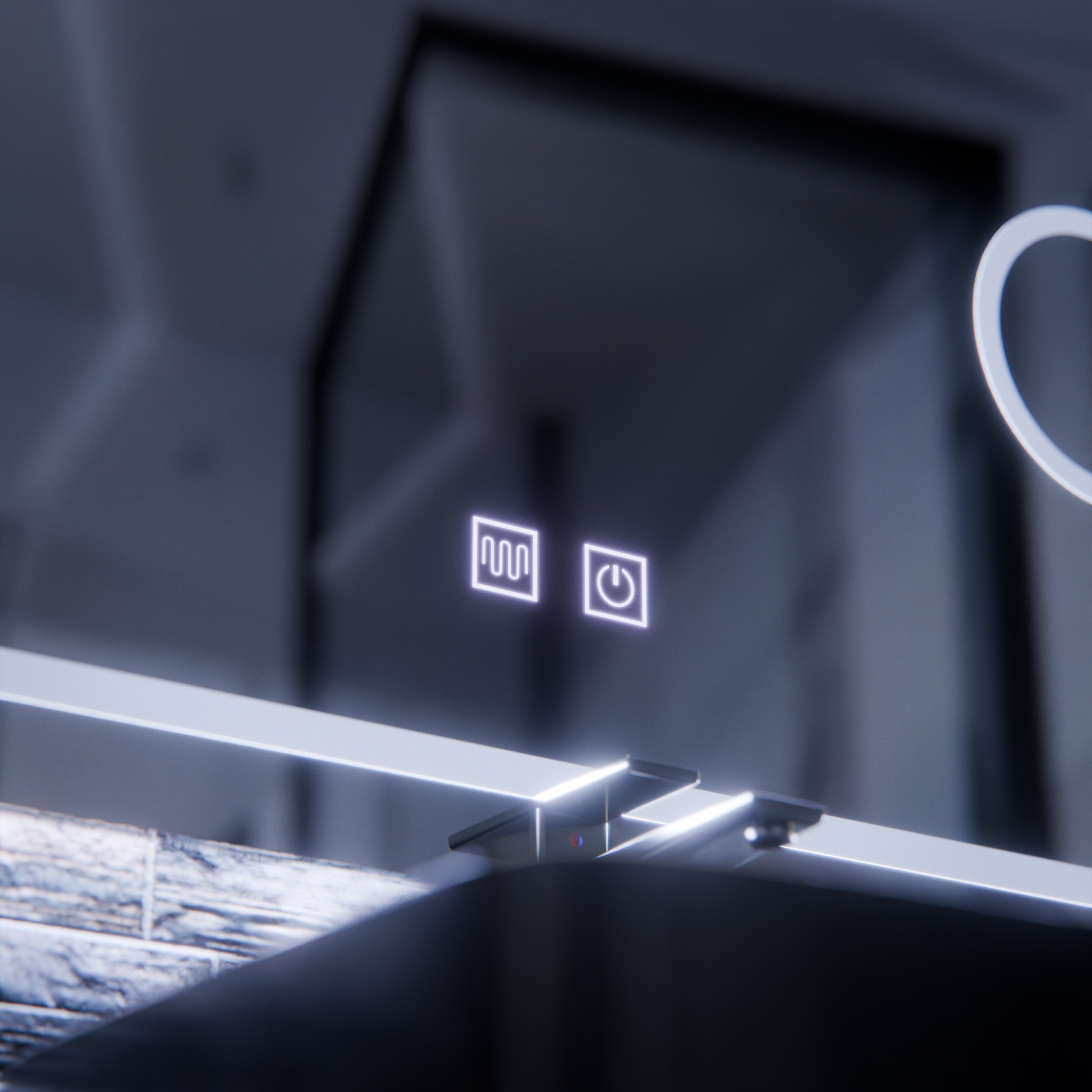 Διαισθητικός έλεγχος αφής για ενεργοποίηση/απενεργοποίηση και γρήγορη ρύθμιση του φωτός. Η ενσωματωμένη λειτουργία απόσβεσης διατηρεί την επιφάνεια του καθρέφτη καθαρή μετά από ζεστό ντους χωρίς ατμό.