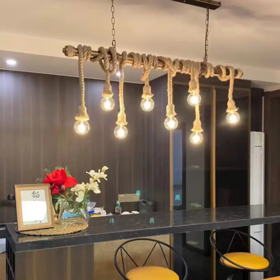 Vintage Πολυέλαιος με Σχοινί PEDRO, 8 x E27, Καφέ Μεταλλ