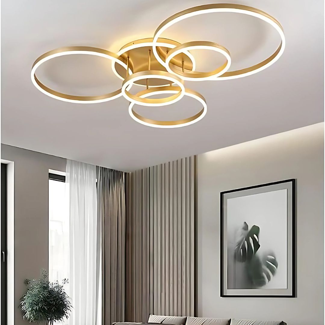 Πολυέλαιος LED με Τηλεχειριστήριο DARIO, 5 κύκλοι, 138W, Θερμό/Ψυχρό/Ουδέτερο φως, Ρυθμιζόμενο, Χρυσό