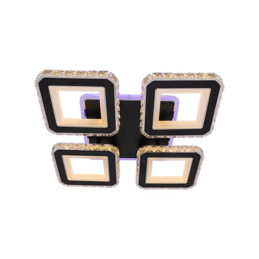 Πολυέλαιος LED με τηλεχειριστήριο και κρύσταλλο LEILA RGB 79W, 4 τετράγωνα, κρύο/ζεστό/ουδέτερο φως, ρυθμιζόμενο, γυαλιστερό μαύρο χρώμιο